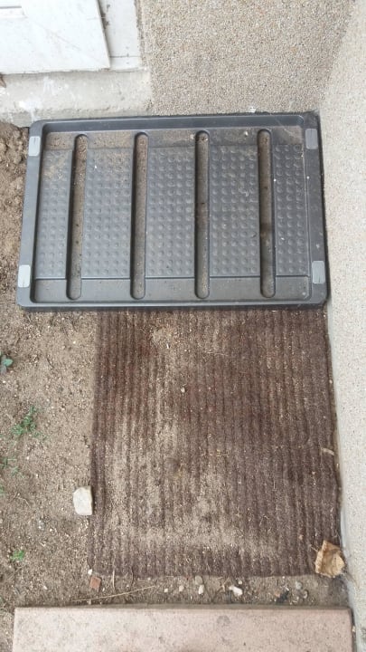 Eingangsbereich außenEingangsbereich vorm Haus. Dieser Abtreter soll wahrscheinlich zum Schmutz abputzen dienen.