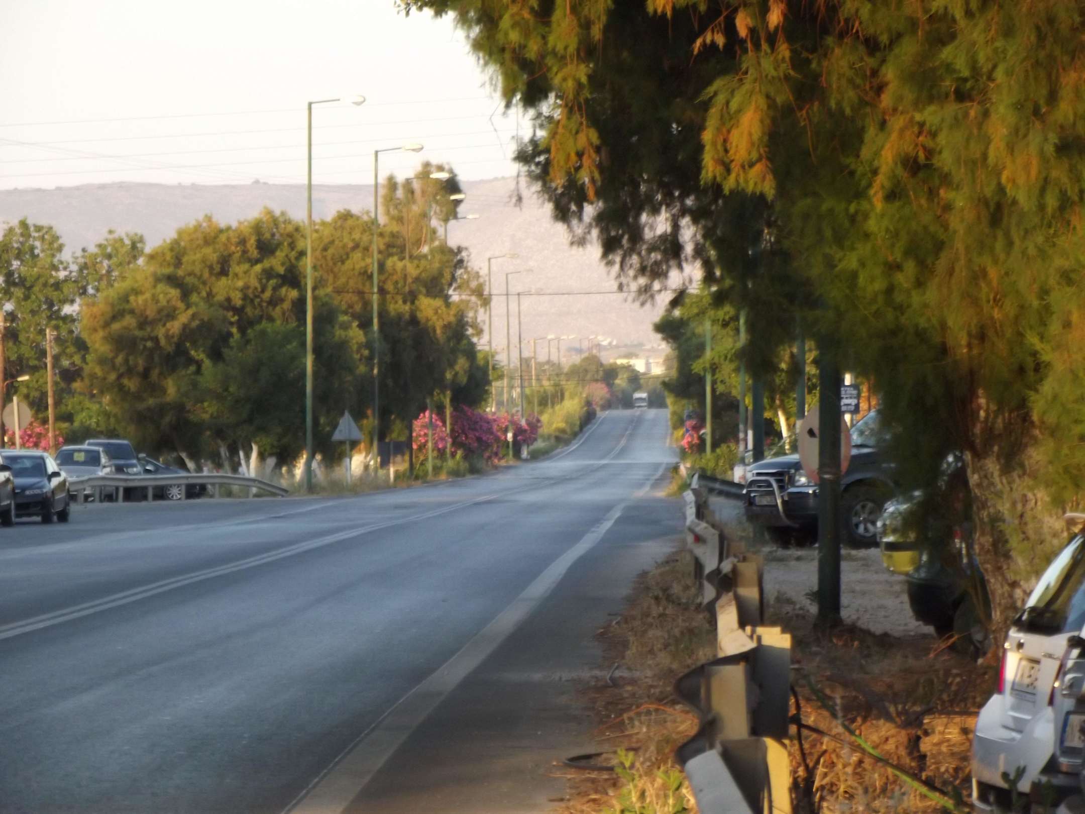New Road vor dem Hotel, hier befinden sich auch die Bus - haltestellen Richtung Chania u. Rethimnon