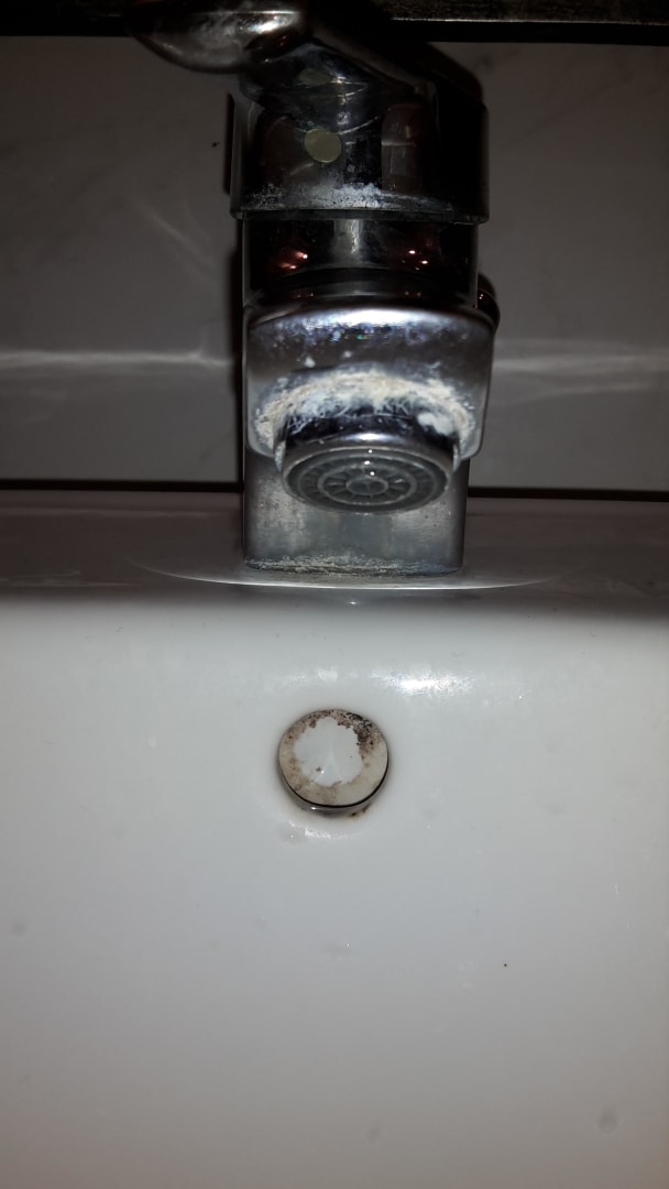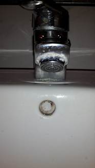 Wasserhahn im Bad mit Blitz fotografiert