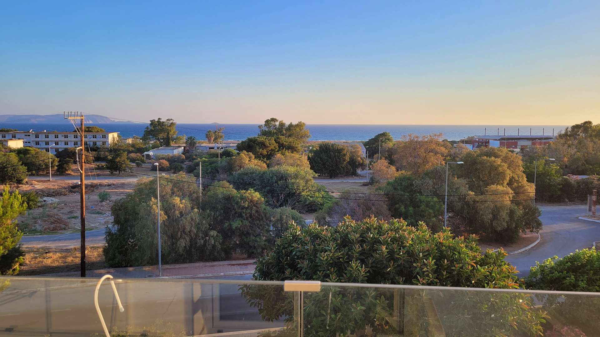 Aussicht mit Blick auf Straße und Brachland -und etwas Meer