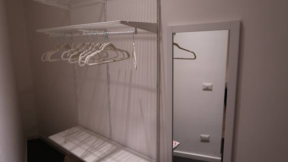 Praktisch: Nische für Kleider und anderen Kram sowie ein Spiegel