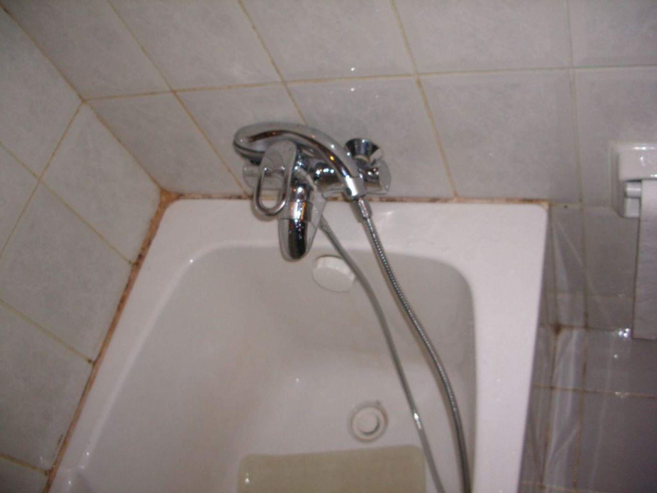 wie man unschwer erkennen kann, ist die Badewanne nicht wirklich sauber :-(