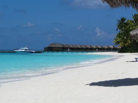 Strand bei der Ankunftstelle Veligandu Maldives Resort Island
