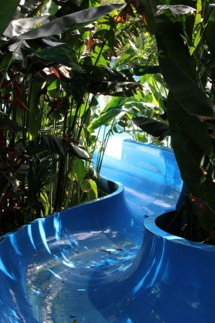 WasserrutscheKleine Wasserrutsche durch die Bepflanzung in den Pool