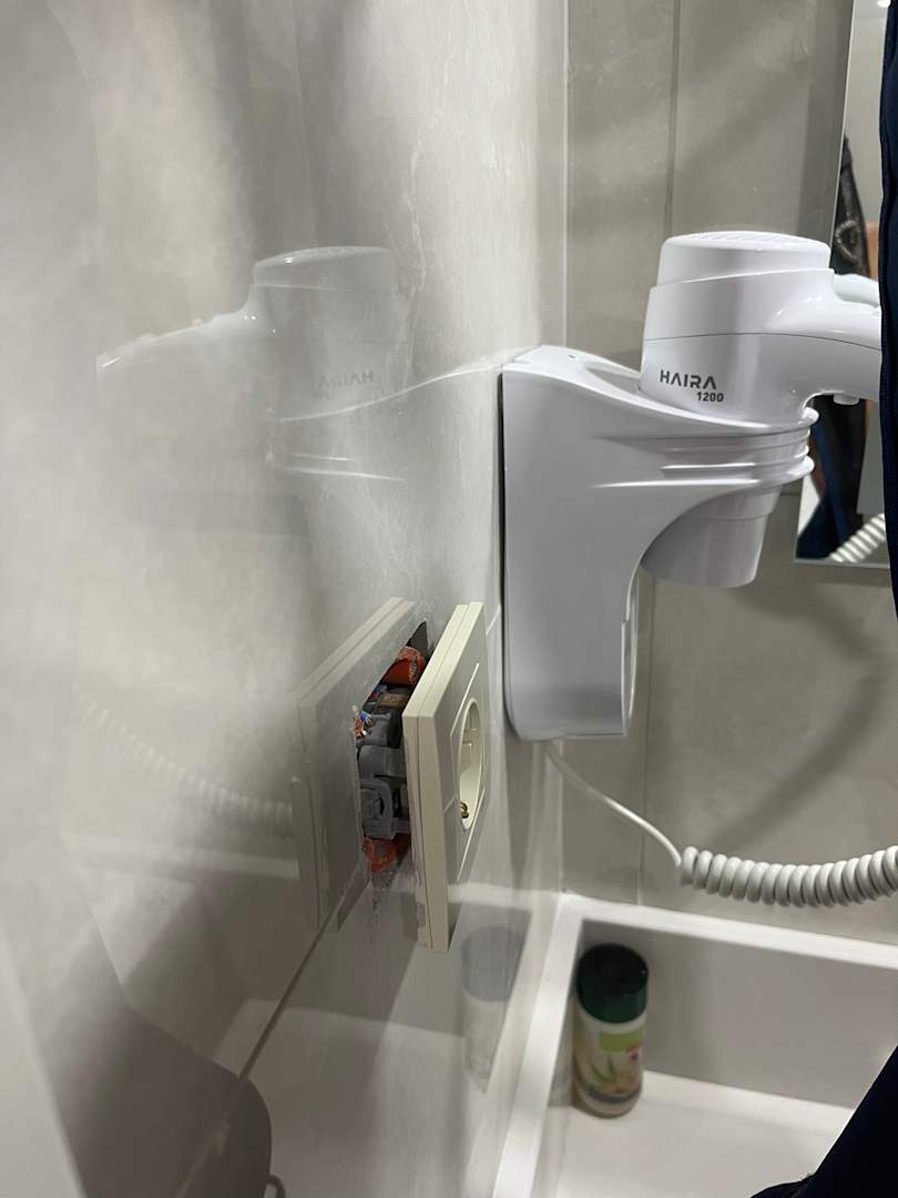 Total gefährlich!! Steckdosen hängen halb aus der Wand…