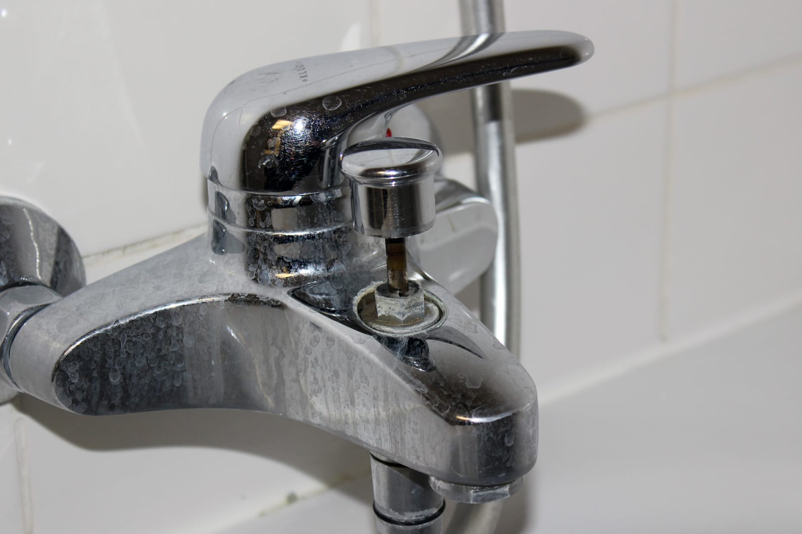 Badewanne mit Brause, Ventilstift defekt, Amartur nicht sauber.