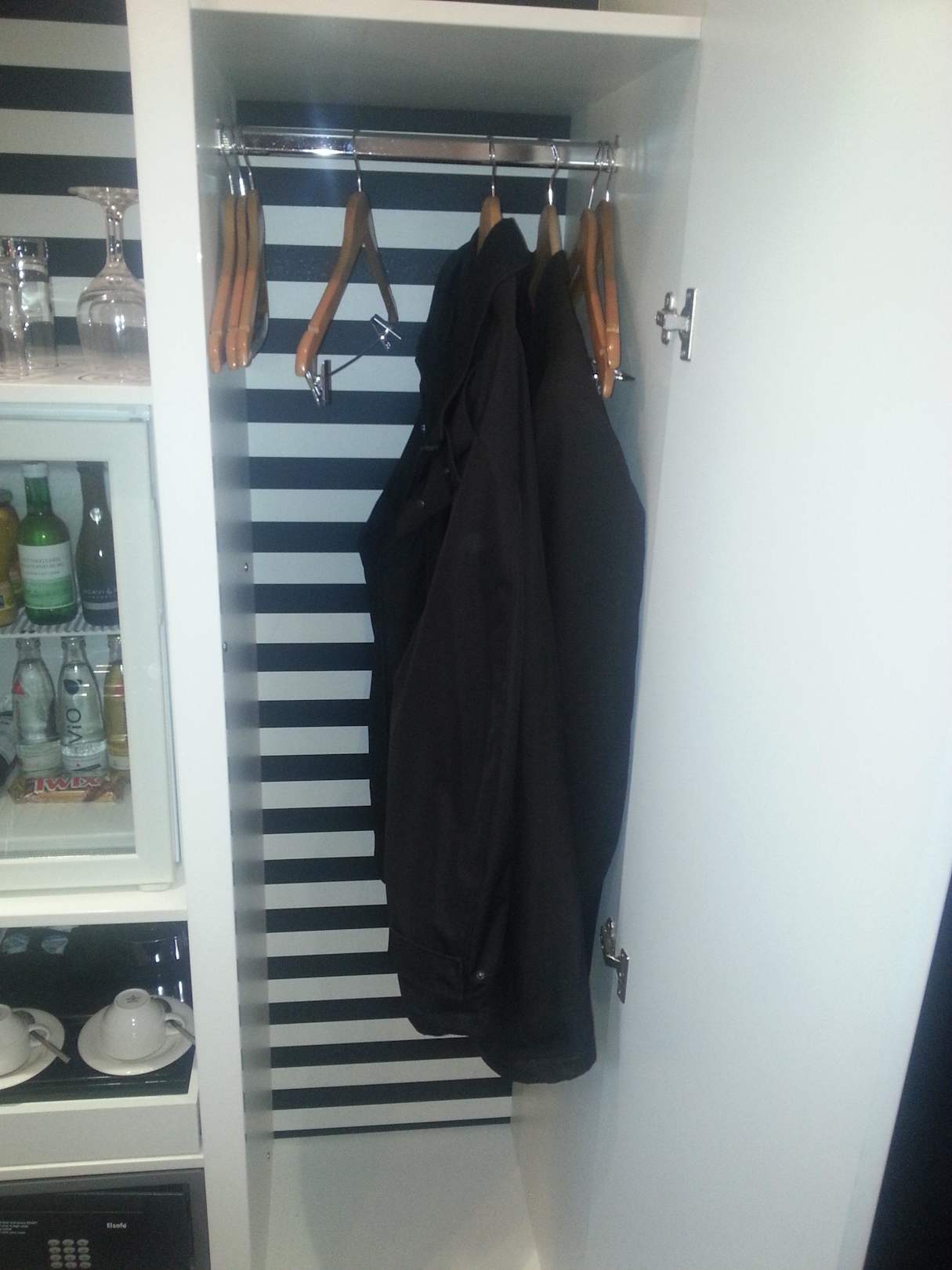 Kleiderschrank ist sehr klein mit 2 Anzügen und 2 Hemden ist er praktisch "voll"
