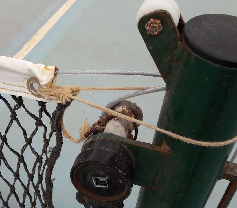 Die Tennisanlage, notdürftig geflickt