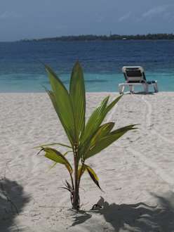 Einsame junge Palme am Strand.