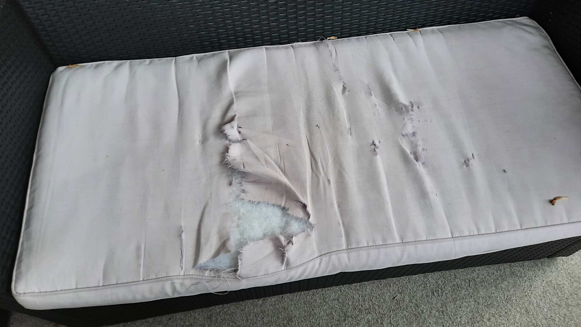 So etwas habe ich noch nie gesehen, musste Polster wegräumen( Ekel( saß auf harter Gartenbank.Nach Beschwerde bei Hausherrin, die würden bald ausgetauscht.So etwas geht gar nicht
