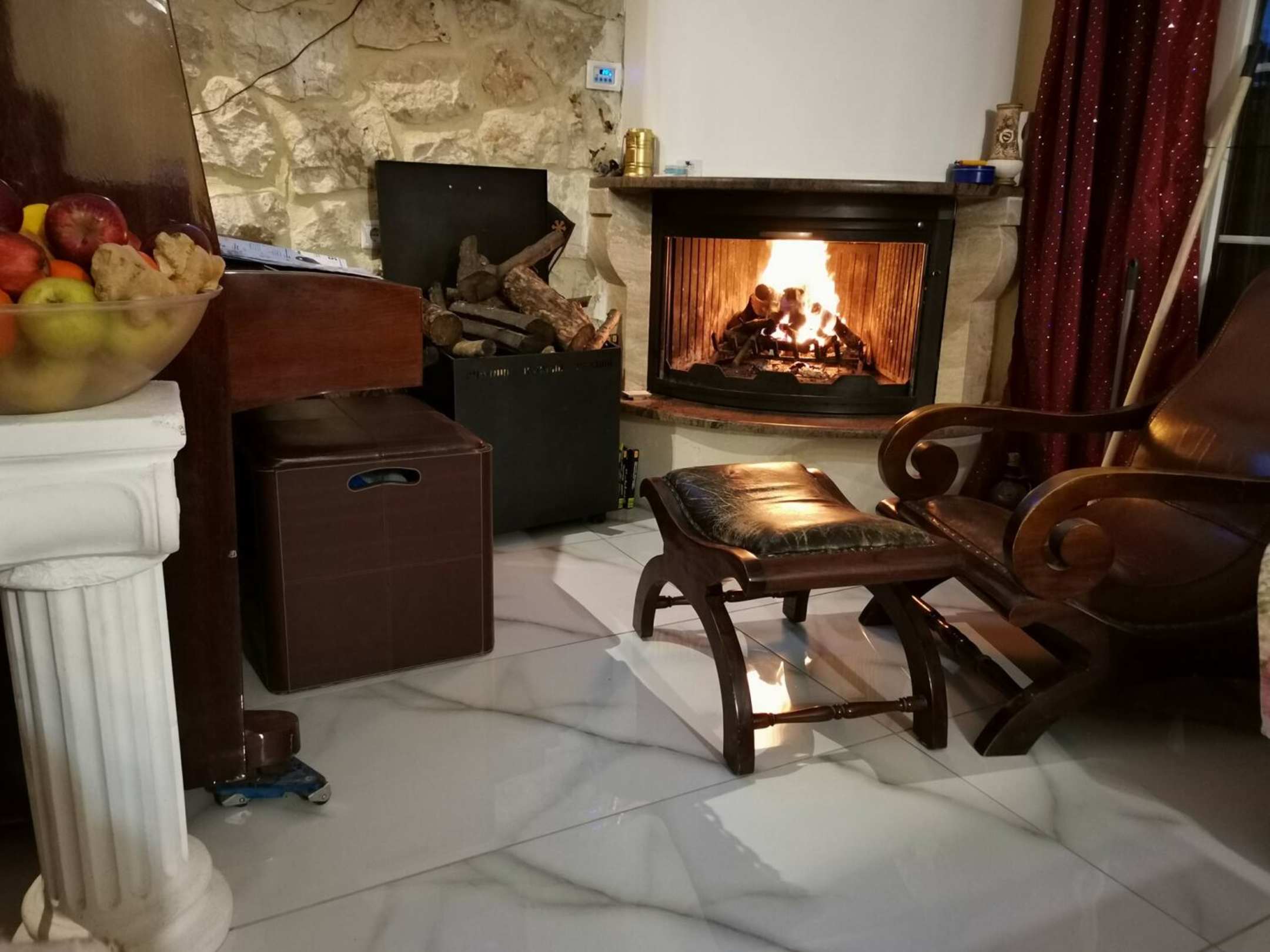 Loft mit Kamin kombiniert mit der Wohnzimmer und Kuecheninsel