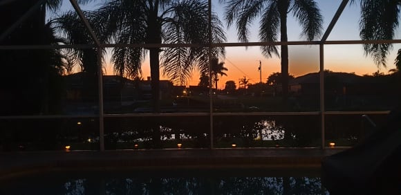Ausblick von der Terasse bei Sonnenuntergang