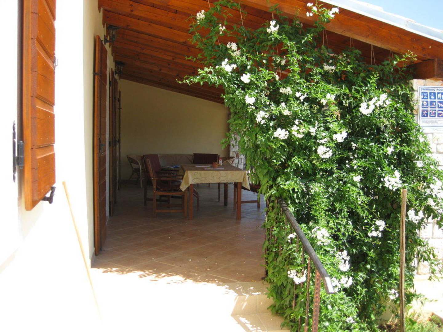 es gibt eine Sommerküche mit gemauerten Grill und diese Terrasse