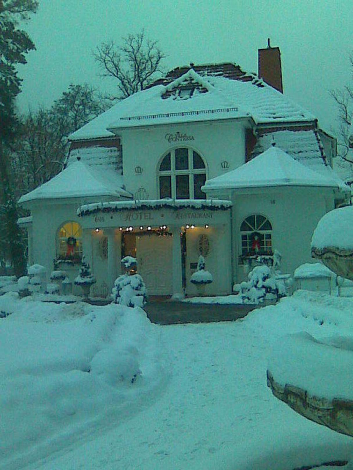 Das Hotel Villa Contessa lädt bereits von Weitem ein, gerade durch das winterlich - märchenhaftes Bild inmitten anderer Hotelanlagen zeigt sie sich und strahlt wie eine Perle im Schnee!!