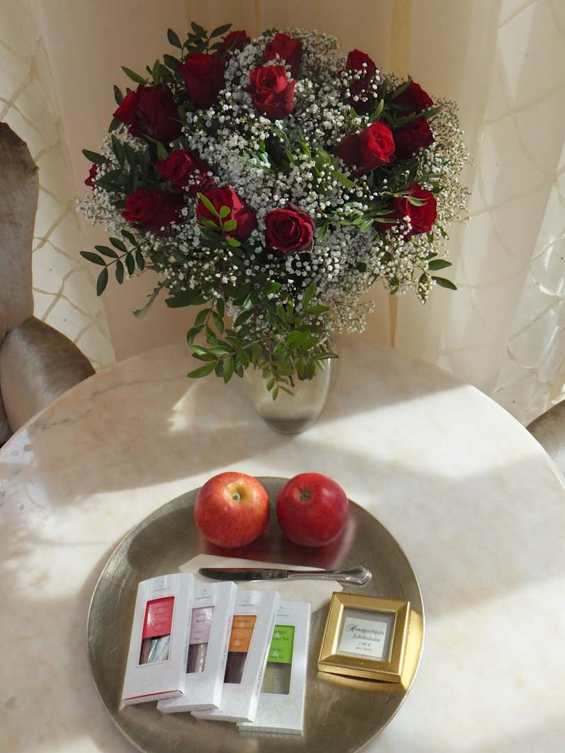 Ein erster GrußEin wunderschöner Rosenstrauß, bei dem die Rosen sogar himmlisch dufteten, empfing uns und hiel die ganze Woche.