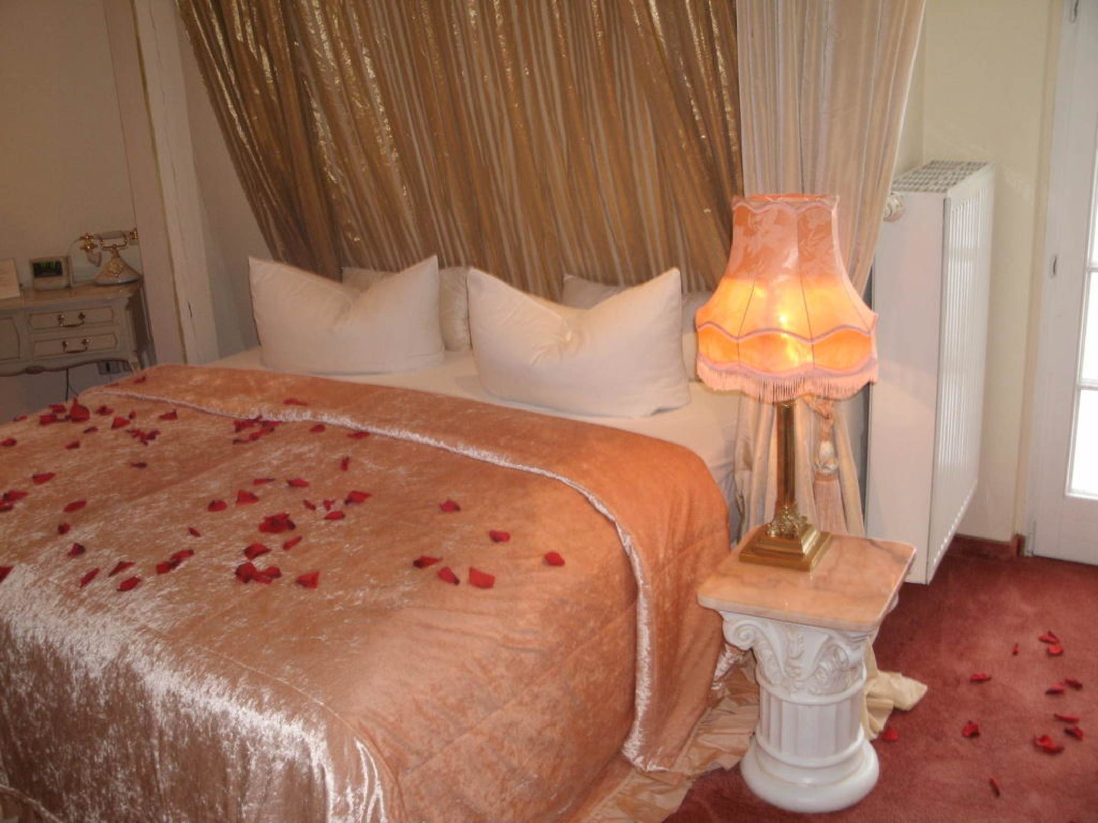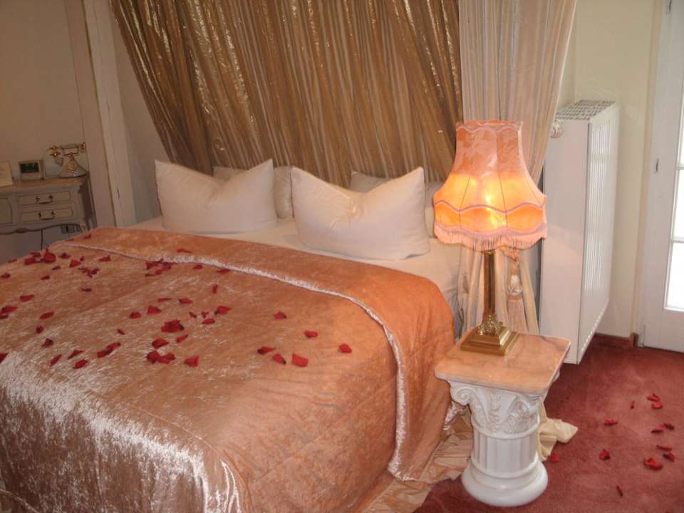 Das gesamte Zimmer war bei Ankunft mit Rosenblütenblättern ausgelegt, da wir das Angebotspaket "Romantische Liebeserklärung" in Anspruch genommen haben.