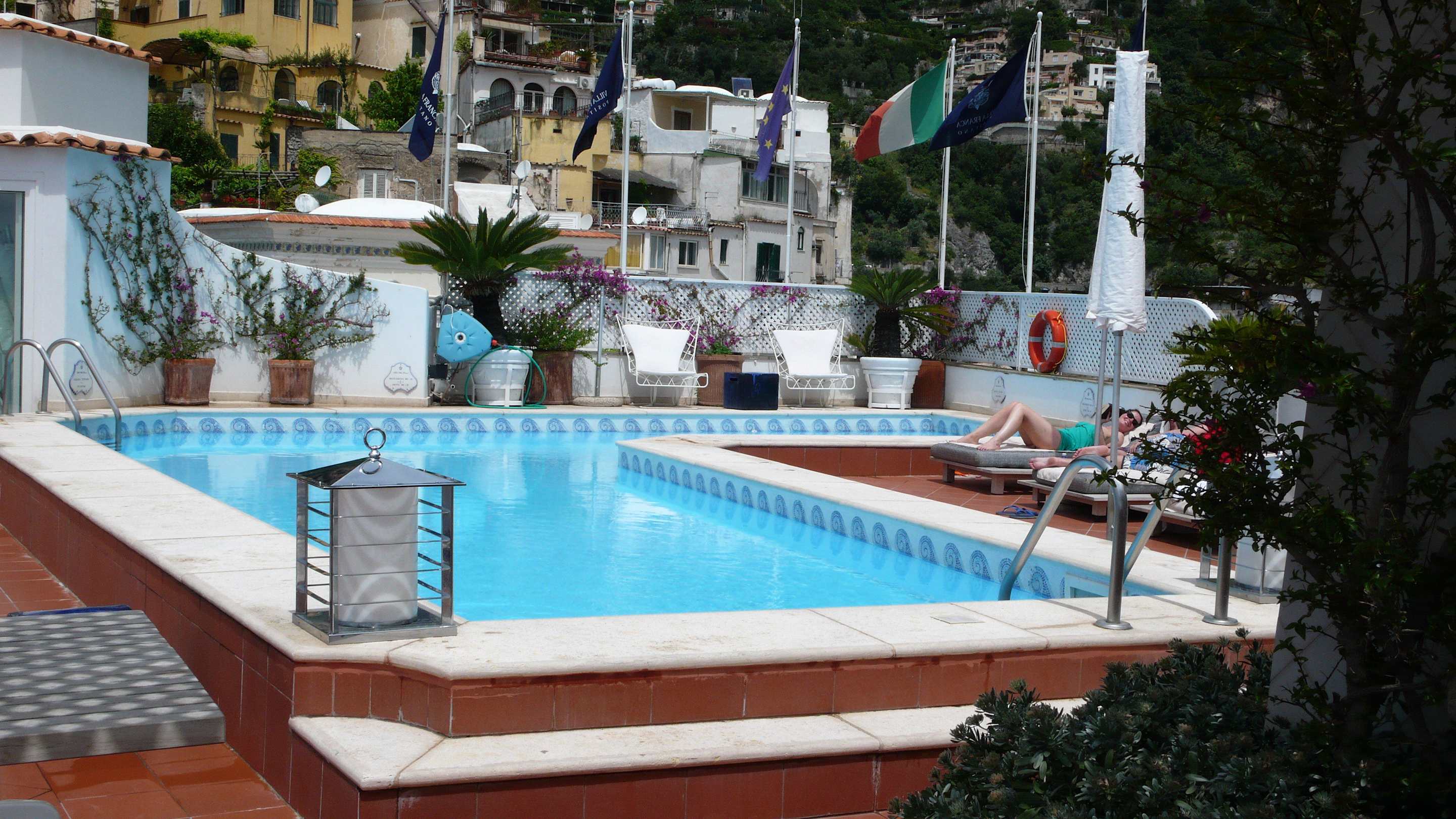 Tiny pool for 37 rooms with 13 deck chairs