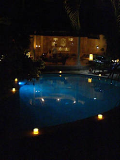 Blick über den Pool zum Bale