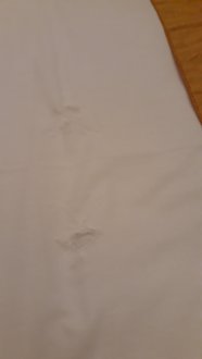 2 von 4 zerschlissenen Stellen im Bettlaken