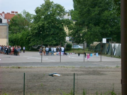 Ausblick auf die gegenüberliegende SchuleRecht lautstarkes Ferienlager während meines Aufenthalte direkt gegenüber!