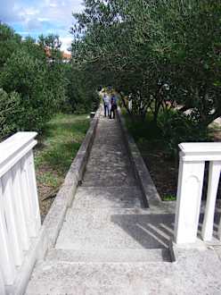 Weg zum Parkplatz und Pool