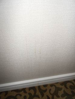 Verdreckte Wand im Zimmer. Fünf Sterne oder billige Pension???