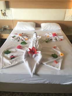 Bei besonderen Tagen wie Hochzeitstag oder Geburtstag werden die Betten schön dekoriert. Es reicht wenn mal ein paar Stunden vorher an der Gäste Betreuung sich meldet und Bescheid gibt