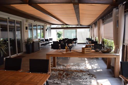 GastroTerrasse mit herrlichem Ausblick auf den Gardasee. Hier wird bei schönem Wetter gegessen. Schöne Atmosphäre!