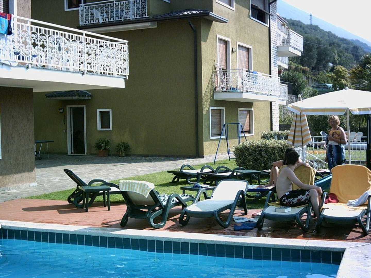 Blick vom Pool auf das Areal
