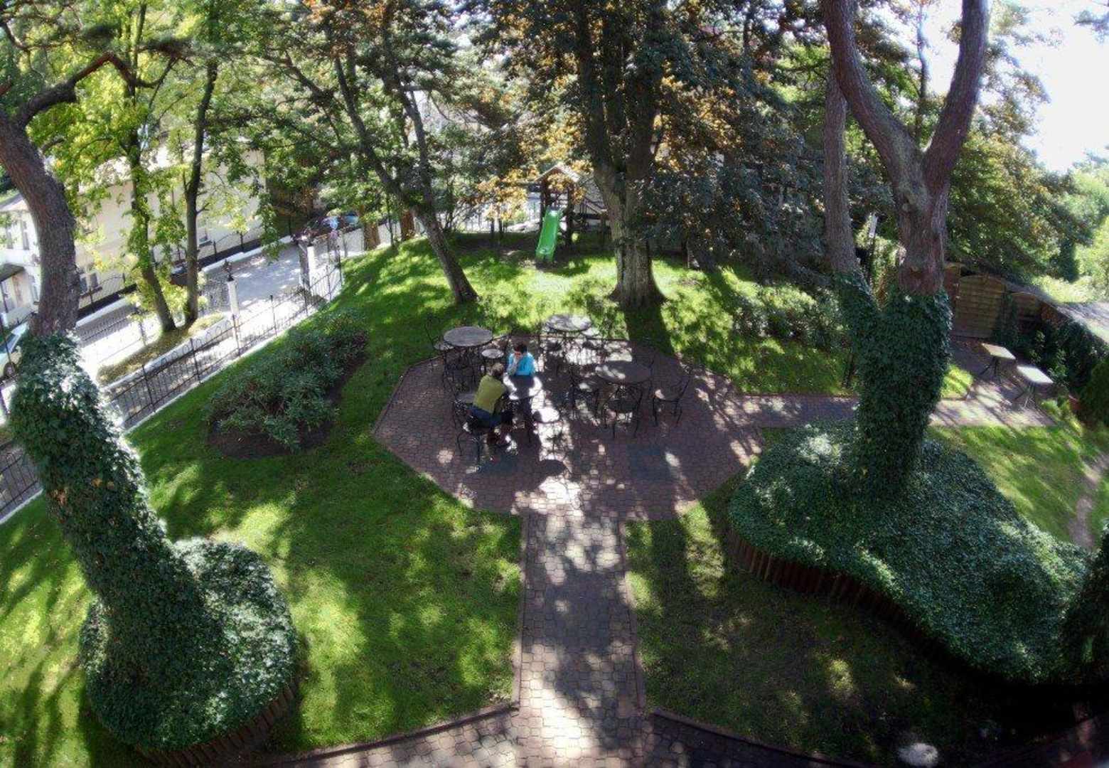 Ogórd z tyłu pensjonatu wraz z placem zabaw