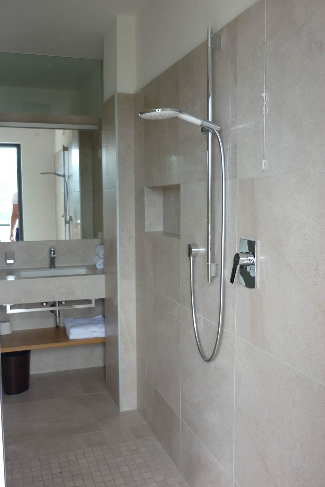 Begehbare Dusche ohne Spritzschutz