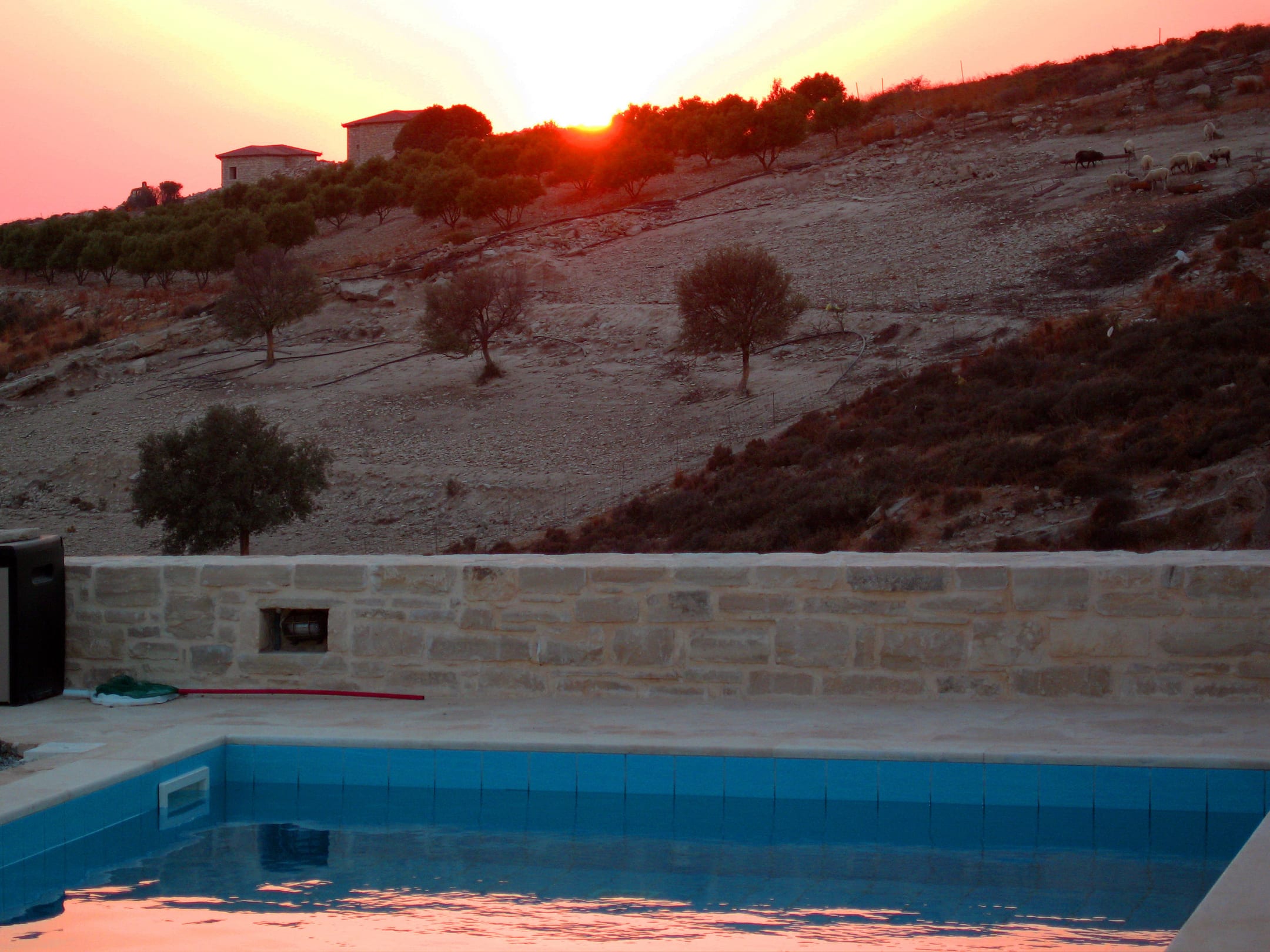 Der Pool bei Sonnenuntergang
