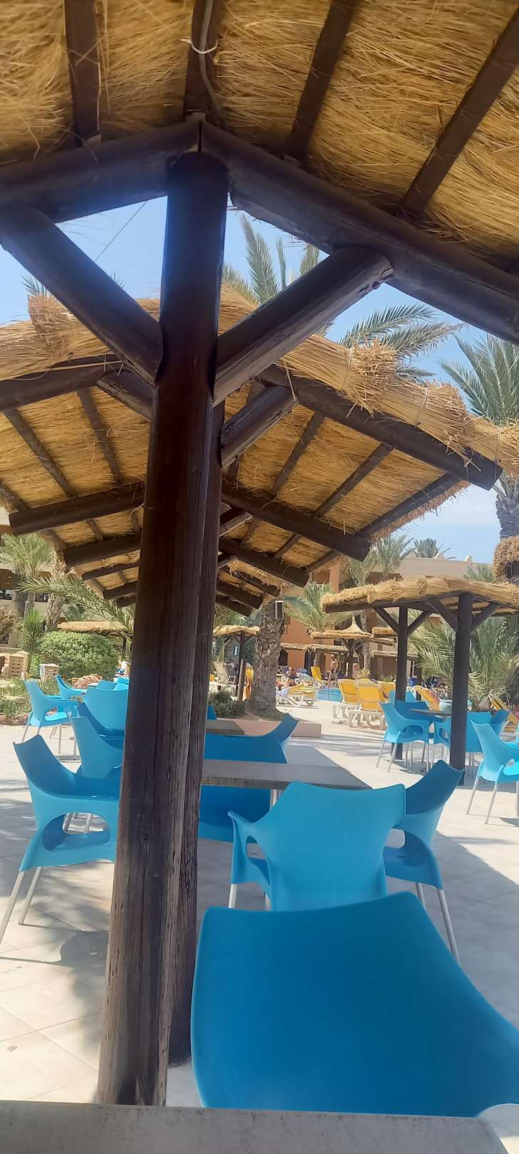 Schattige Sitzplätze Nähe Pool, gepflegt. Manche stühle waren kaputt, demzufolge konnte man leider einigen Gästen beim Fallen mit dem Stuhl beobachten. Ist traurigerweise einem vom uns passiert, wobei er Verletzungen davom getragen hat.