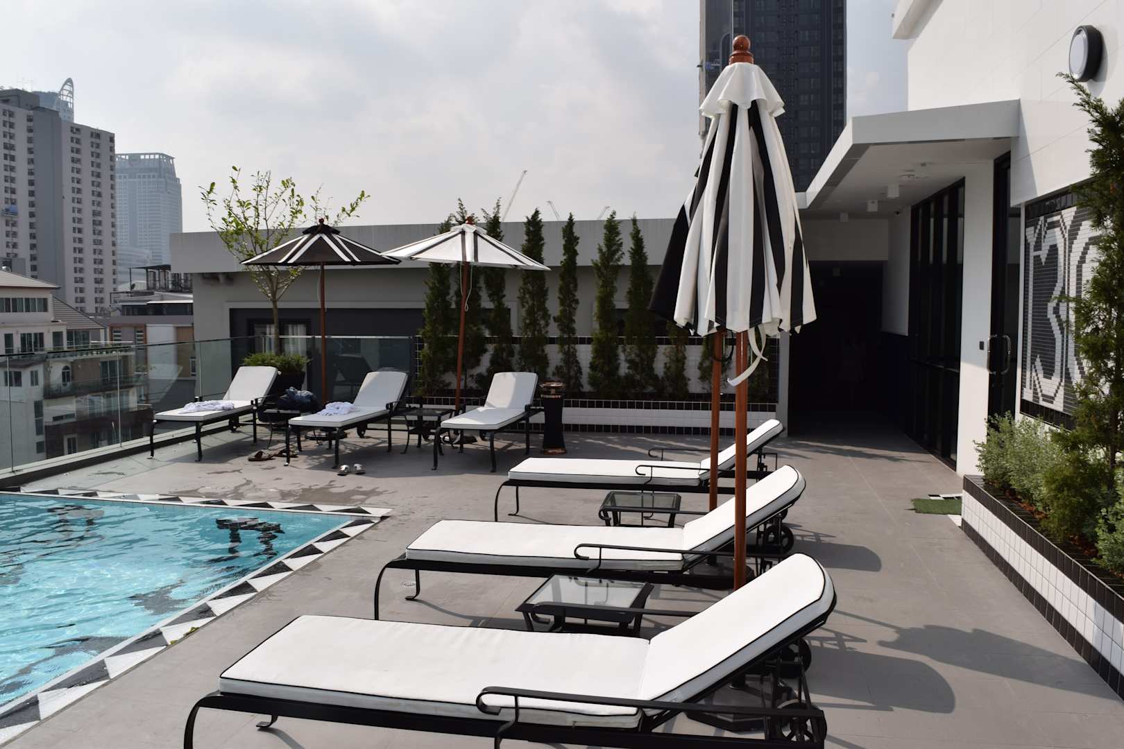 Pool mit Liegen. Wobei die Auflagen der weißen Liegen schon alle recht fleckig waren.