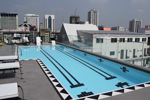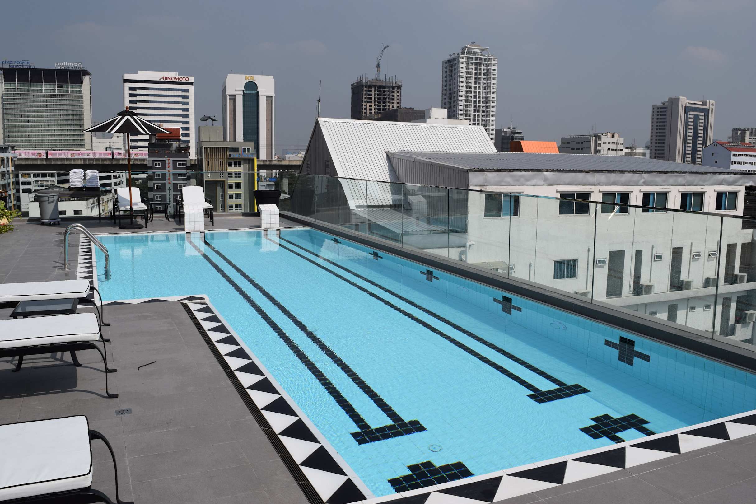 PoolKleiner Pool auf dem Dach. Das Glas vom Geländer schon ziemlich blind und nur auf Fotos recht schick.