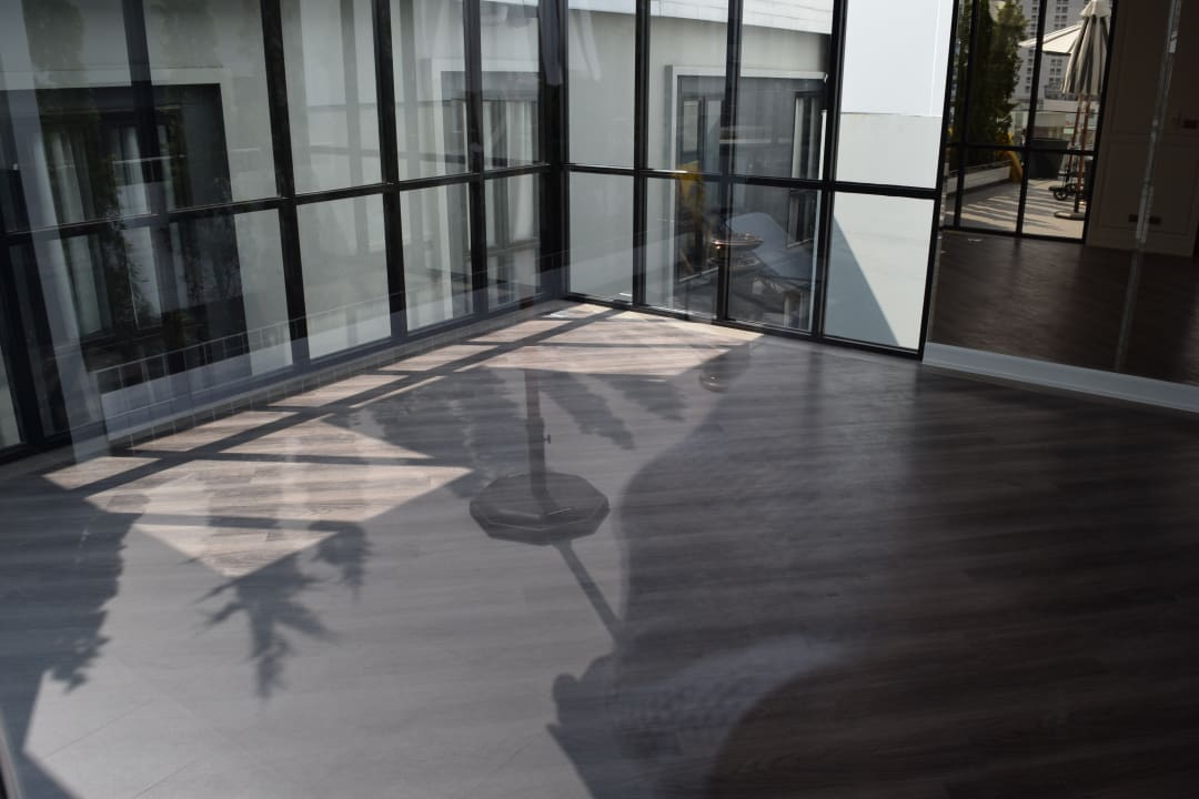 Der Fitness-Raum. Selbst 2 Monate nach Eröffnung vom Elite-Tower noch ohne Sportgeräte.