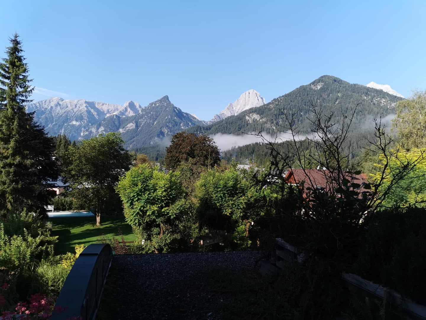 Blick vom Balkon unseres schönen Zimmers des Hotels Stoderhof
