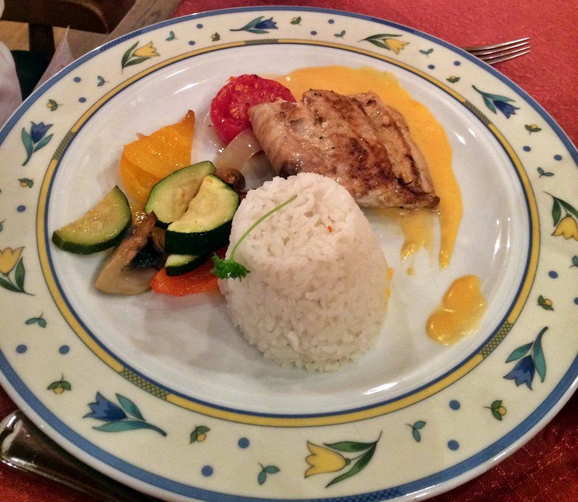 Hauptspeise Lachs mit Hummerschaum