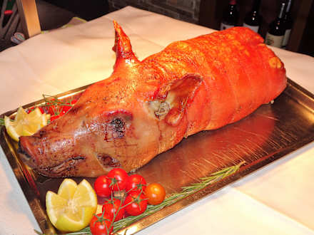 GastroAbendessen im Hotel Dosses: Das Spanferkel bei der gastronomischen Reise durch die Regionen Italiens
