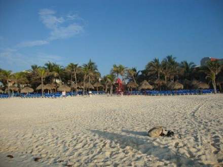 Hotelstrand vom Meer aus gesehen