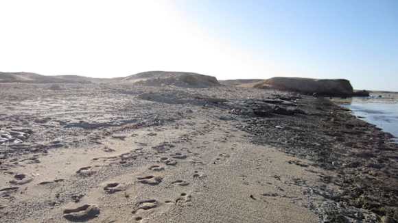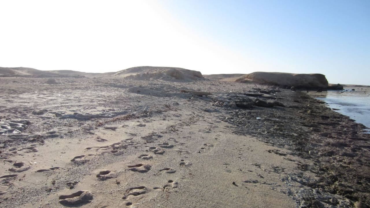 Rechts und links vom Hotelstrand ist Fels