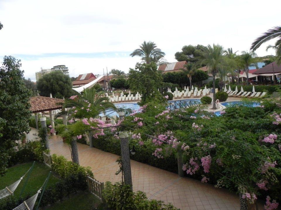 Blick aus dem Zimmer zum Pool und Abendbühne