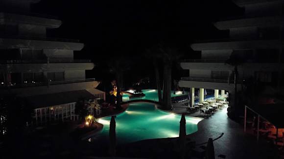 Sicht aus Zimmer 223 auf den Pool Ca. 1Uhr Nachts