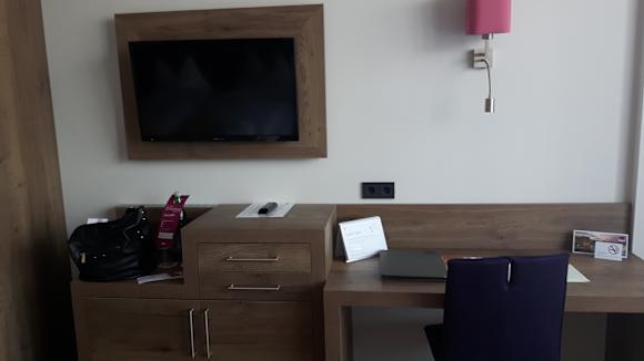 Flachbild TV und Schreibtisch