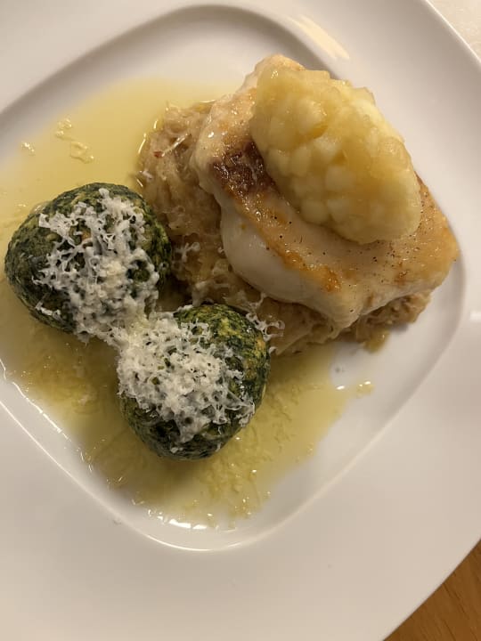 Spinatknödel mit Wallerfilet