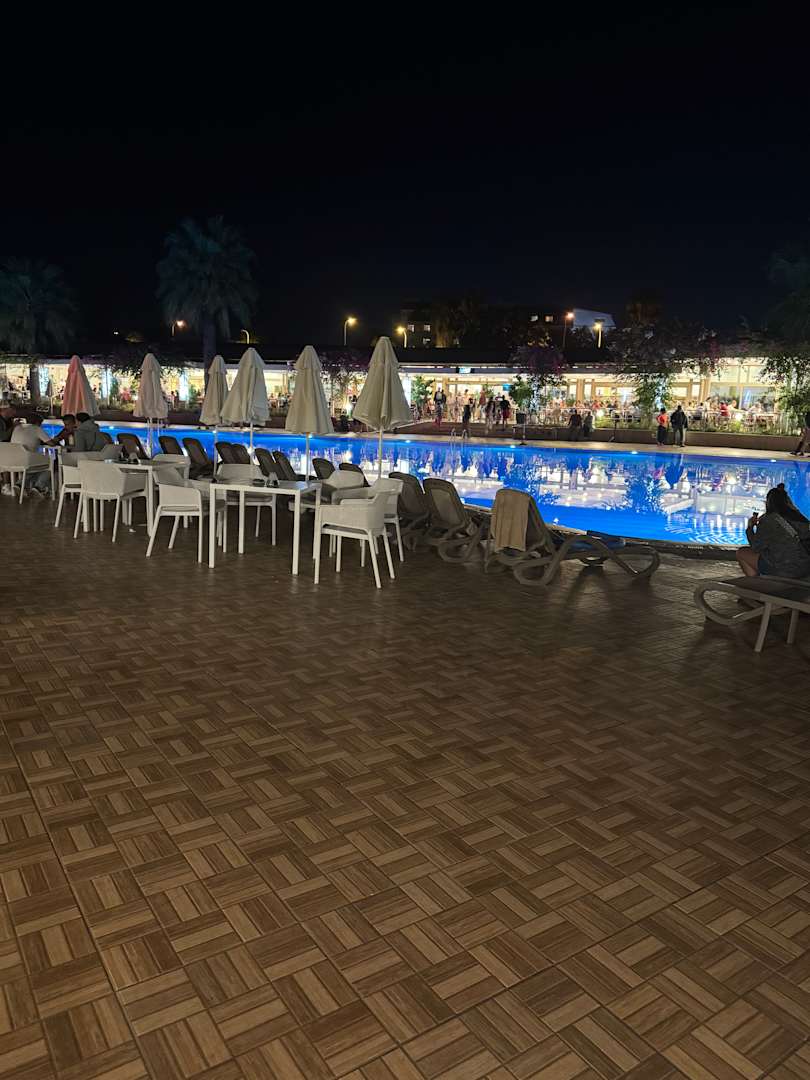 Aussicht von der Poolbar (Ruhepool) zum Hsuptrestaurant