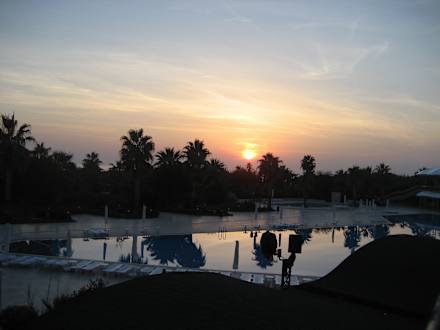 Sonnenuntergang hinter dem Pool