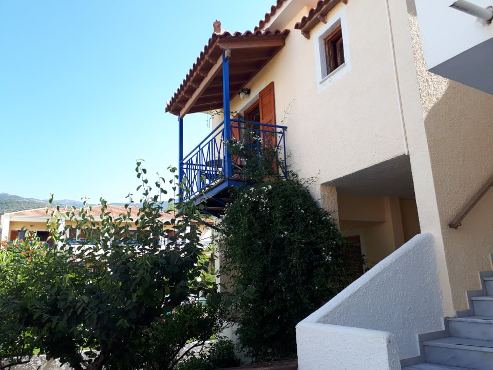 Aussenansicht vom Zimmer 211. Seitlicher Meerblick & wunderschöner Blick auf die Gartenanlage