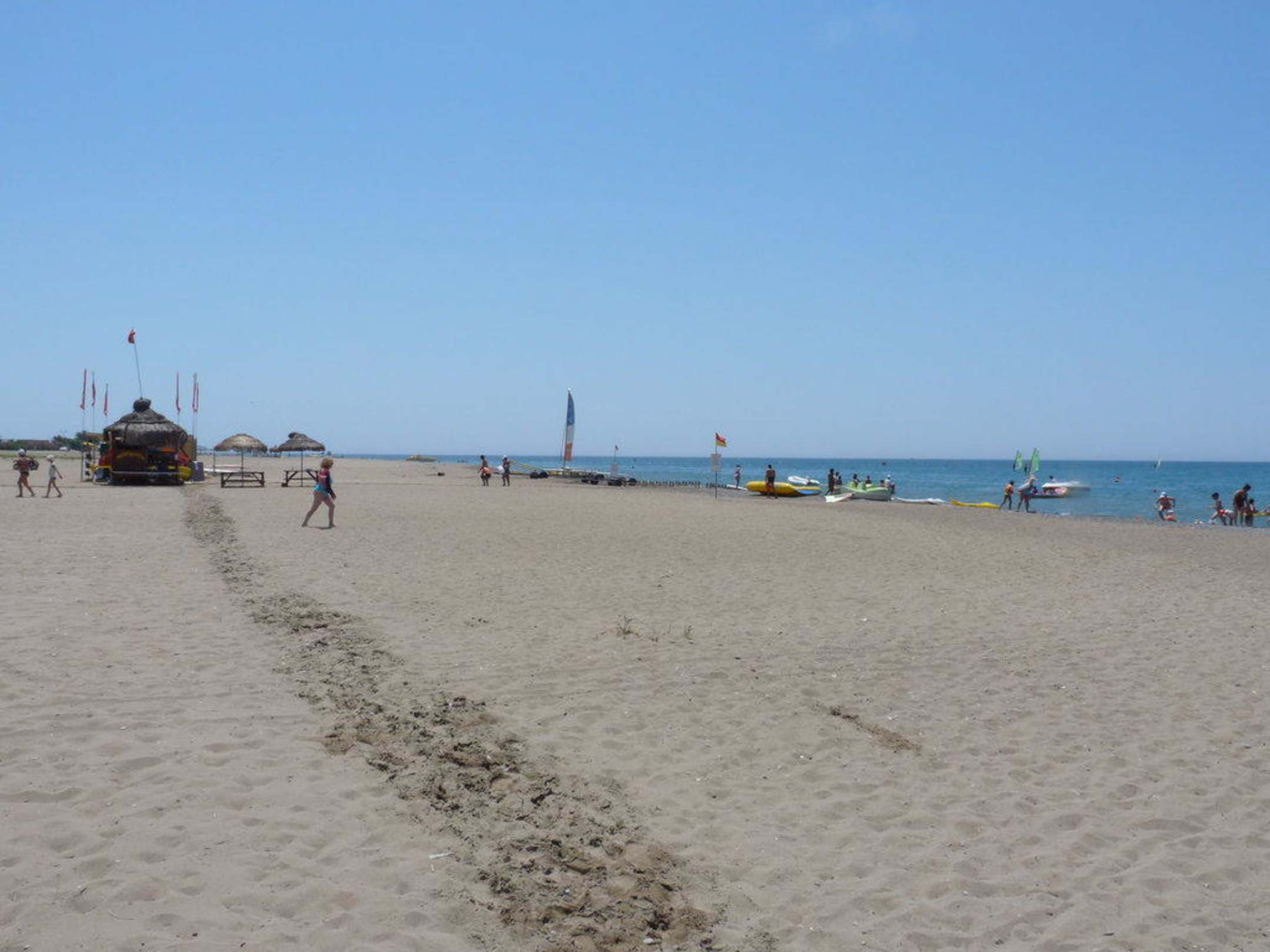 Links vom HotelstrandDieses Bild zeigt den offenen Strand direkt links neben dem Hotelstrand. Dort befindet sich lediglich ein Wassersportzentrum.