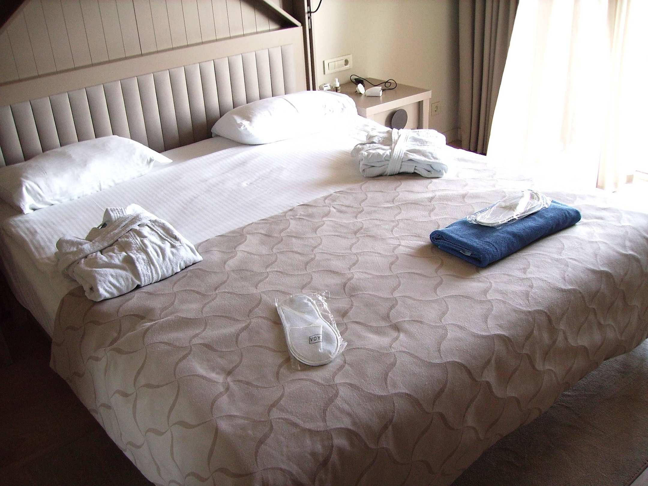 Bett mit Bademänteln und sonstigen Utensilien